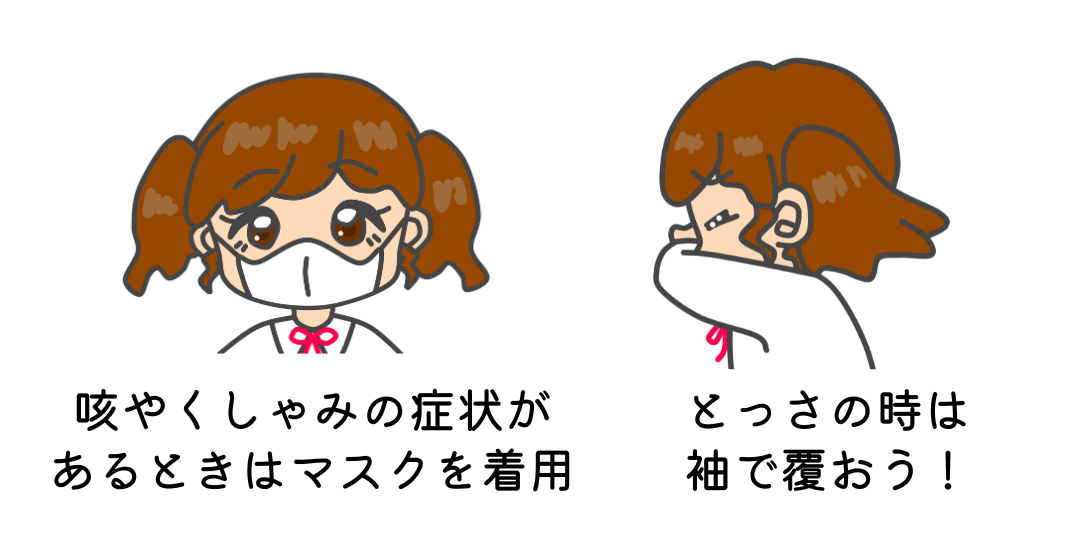 冬はさまざまな感染症が流行しやすい季節です。温かくして規則正しい生活を心がけましょう。十分な睡眠とバランスのとれた食事で、体の免疫力を高めることが大切です。咳やくしゃみが出るときはマスクをつけたり、とっさの場合は口や鼻を覆えたりするようにして、お子様とも練習してみましょう。